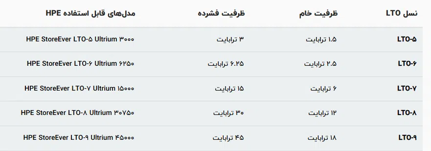 مقایسه نسخههای مختلف LTO از LTO-5 تا LTO-9